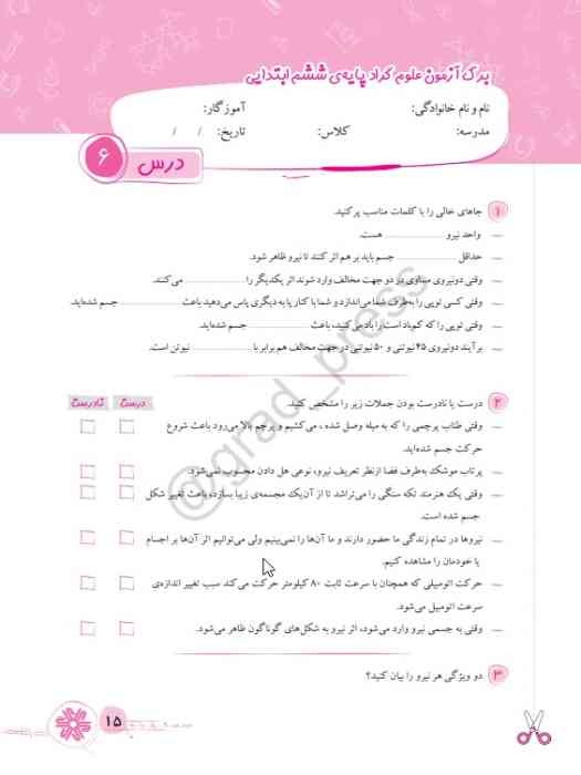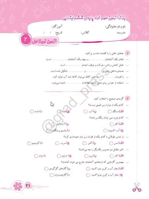 گراد کتاب برگ آزمون علوم ششم ابتدایی