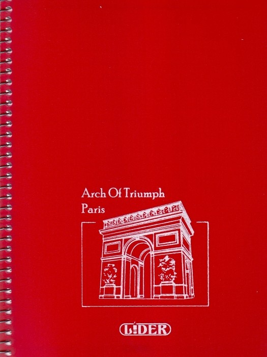 دفتر 50 برگ سیمی جلد طلقی قرمز لیدر طرح طاق نصرت پاریس