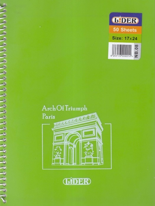 دفتر 50 برگ سیمی جلد طلقی سبز لیدر طرح طاق نصرت پاریس