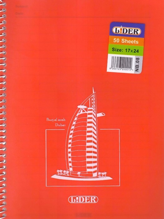 دفتر 50 برگ سیمی جلد طلقی فیروزه ای لیدر طرح برج العرب دبی