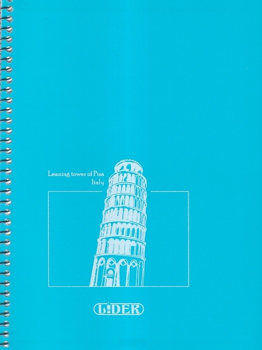 دفتر 50 برگ سیمی جلد طلقی آبی لیدر طرح برج پیزا