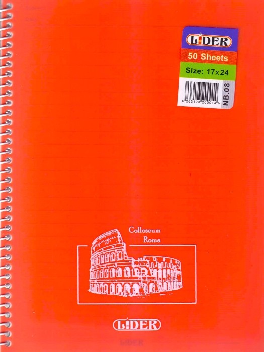 دفتر 50 برگ سیمی جلد طلقی نارنجی لیدر طرح کلوزئوم