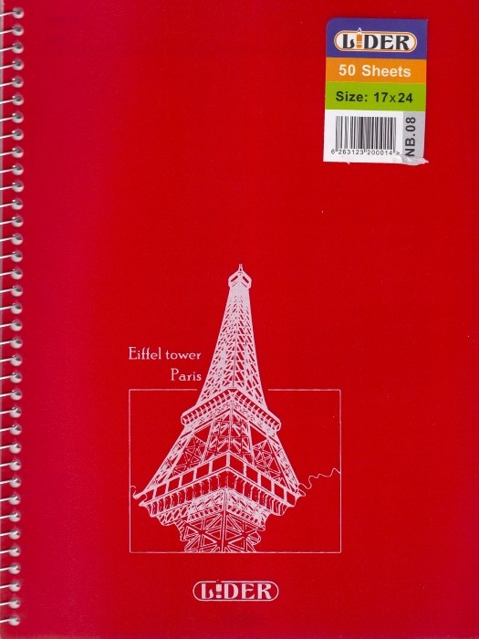 دفتر 50 برگ سیمی جلد طلقی قرمز لیدر طرح برج ایفل